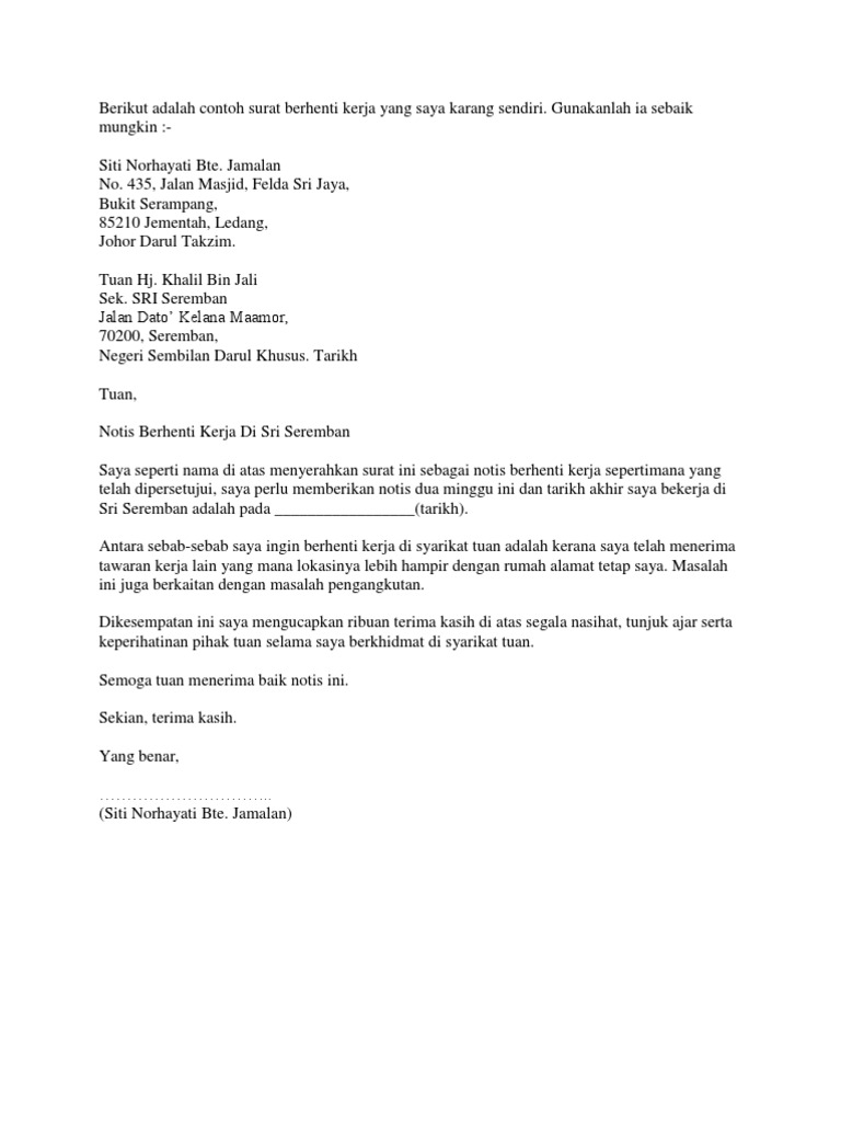 Dan majoriti kebanyakkan majikan tidak tahu yang kita mahu bekerja di dalam tempoh tertentu sahaja. Surat Berhenti Kerja Kilang. Surat Rasmi Jabatan Kerajaan.